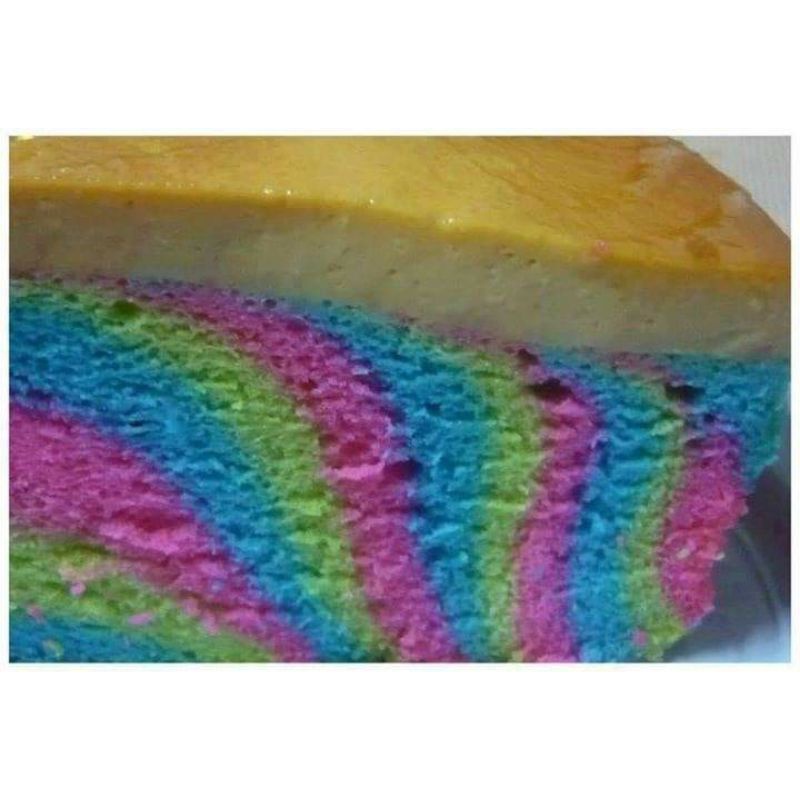 Sedapnya kek puding karamel pelangi. #goldenapron kek ini di bakar sekaligus bersama dgn puding & di bakar cara water . Kek karamel pelangi ini sesuai untuk mereka yang tidak mahir menggunakan ketuhar kerana ianya dikukus. Rainbow caramel cake, creamy dan sedap dimakan bila sejuk. Gabungan antara puding karamel dan kek yang gebu sangat serasi serta memikat selera.